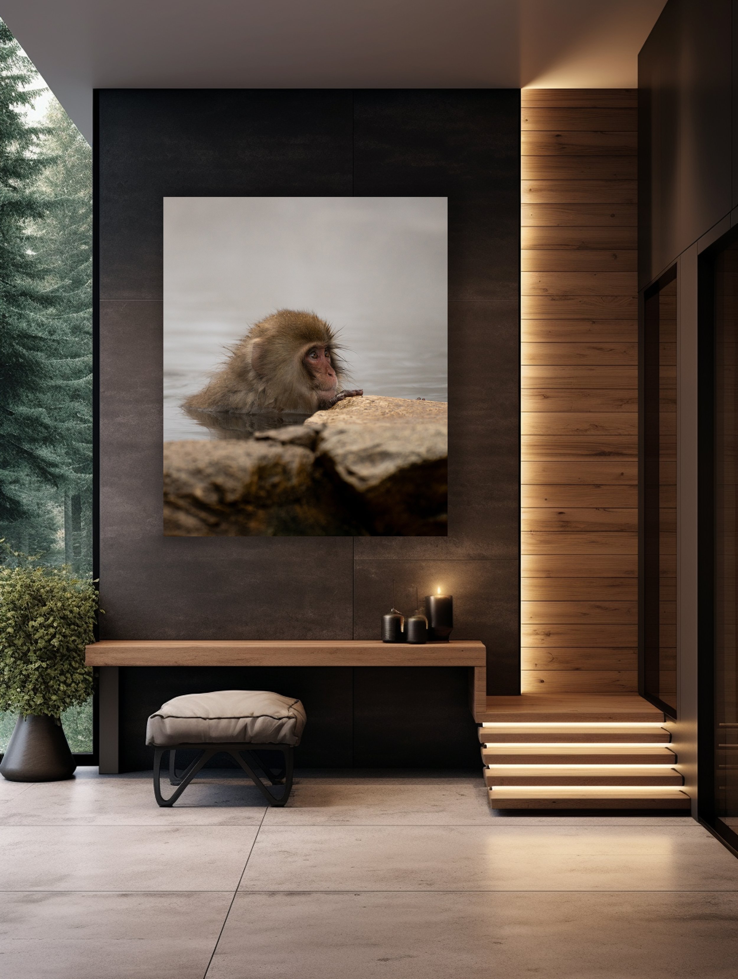The Japanese snow monkey series offers a unique balance of resilence and subtle expression - particulary suited to hospitality spaces, cultural institutions, wellness environments and create offices.